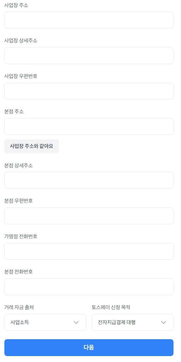 사업장 주소와 같다면 사업장 주소와 같아요 를 눌러주시면 동일 주소가 채워져요.