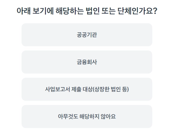 국가 기관, 지방자치단체, 공공 단체 등인 경우, 선택해 주세요