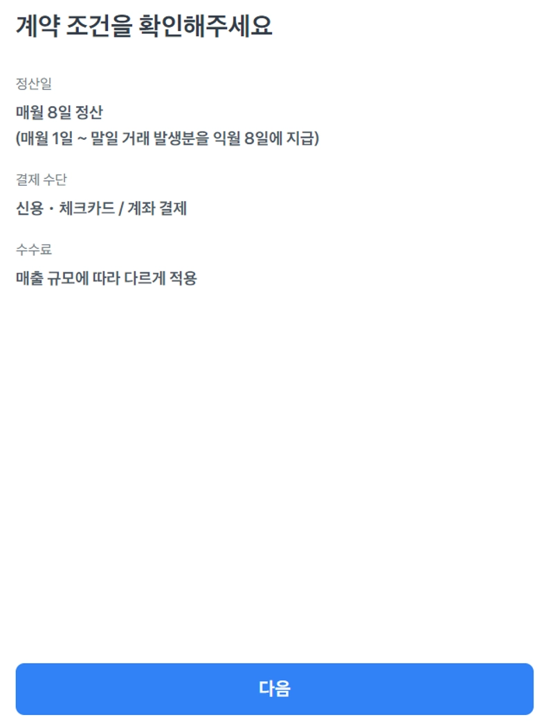 결제 수수료 및 정산일을 한 번 더 확인해 주세요.