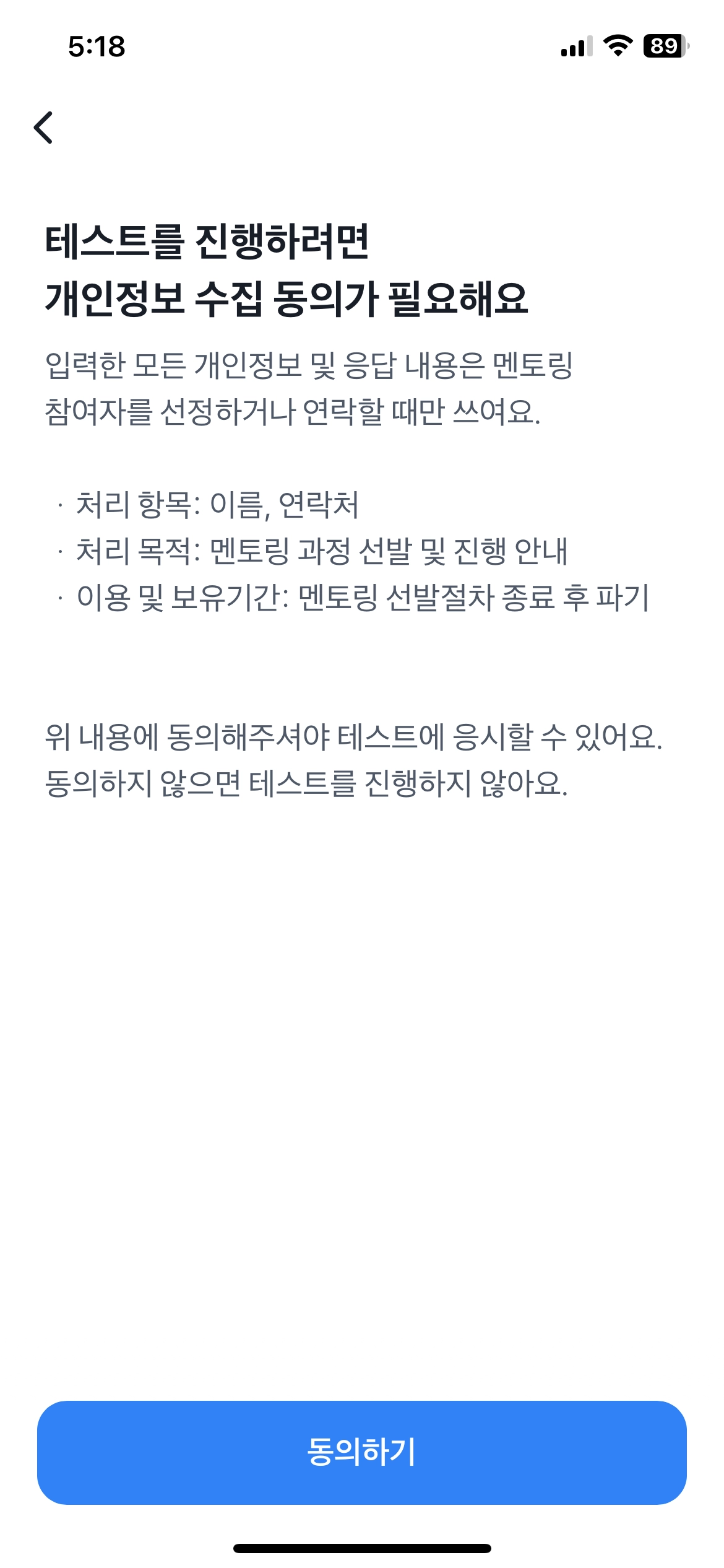 개인정보 수집에 동의해 주셔야 테스트를 시작할 수 있어요.