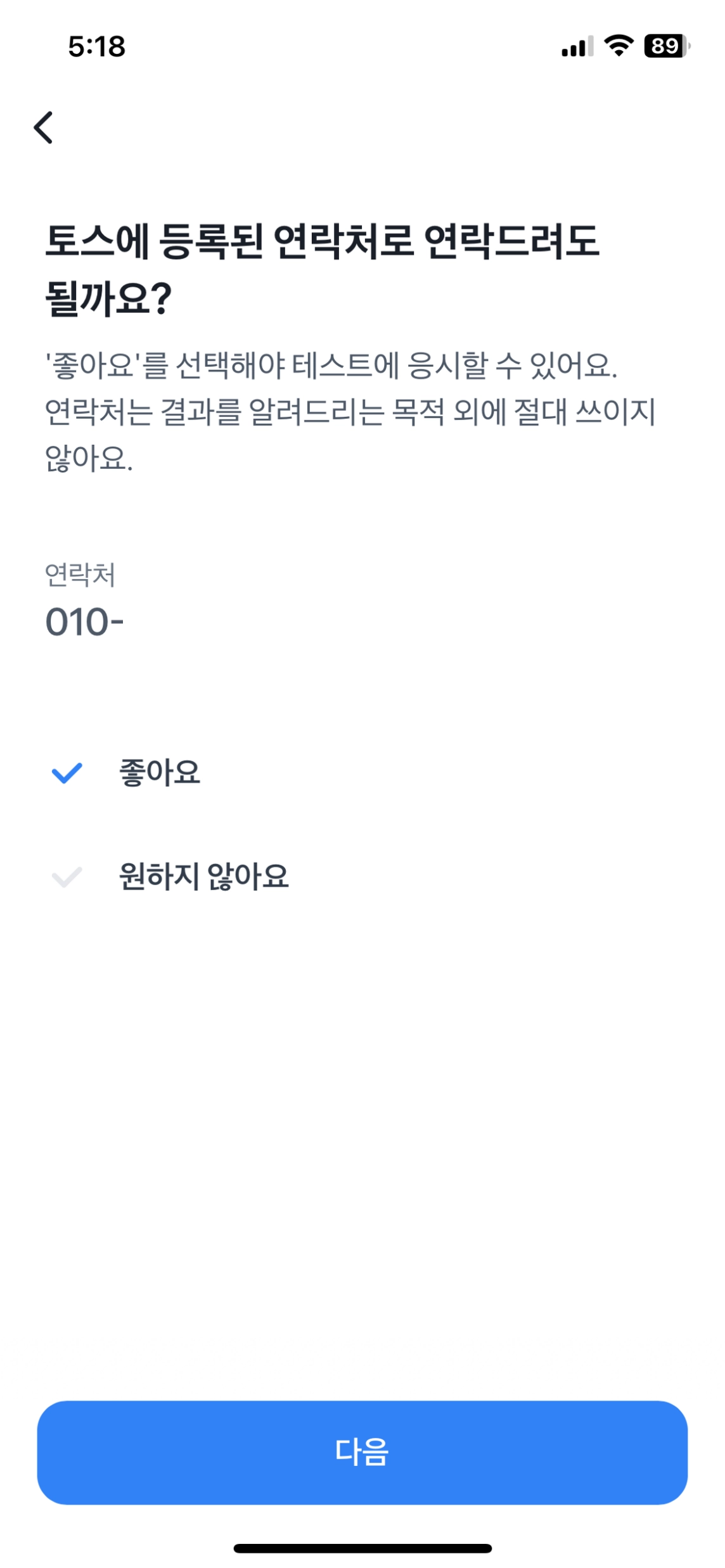 테스트 진행 시, 어떤 화면을 마주하게 될지 보여드릴게요.