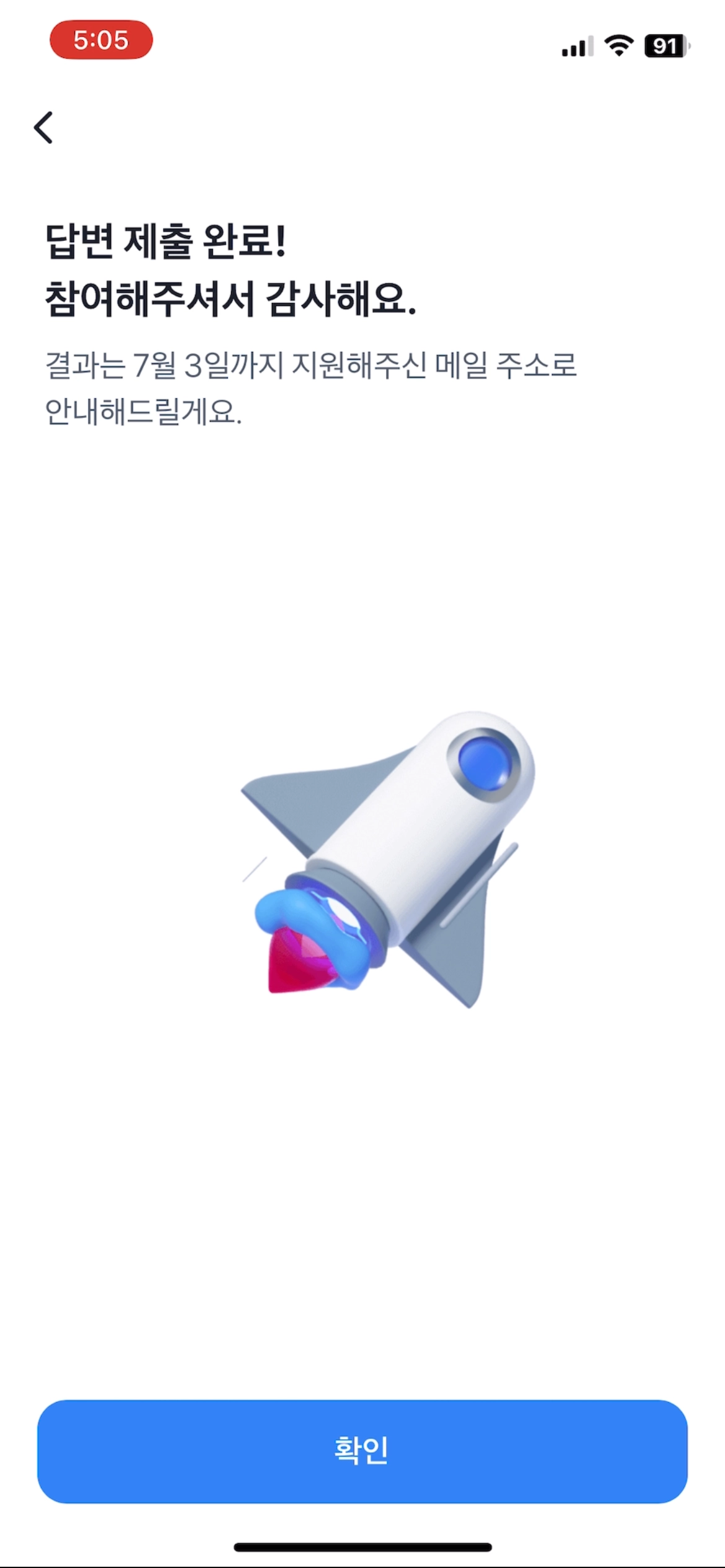 테스트 결과는 7월 3일까지 지원해주신 메일 주소로 안내드려요.