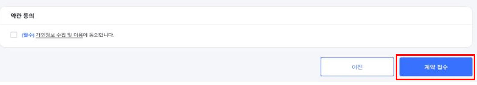 ※ 클릭 이후에는 계약 신청 페이지로 이동하게 되며,