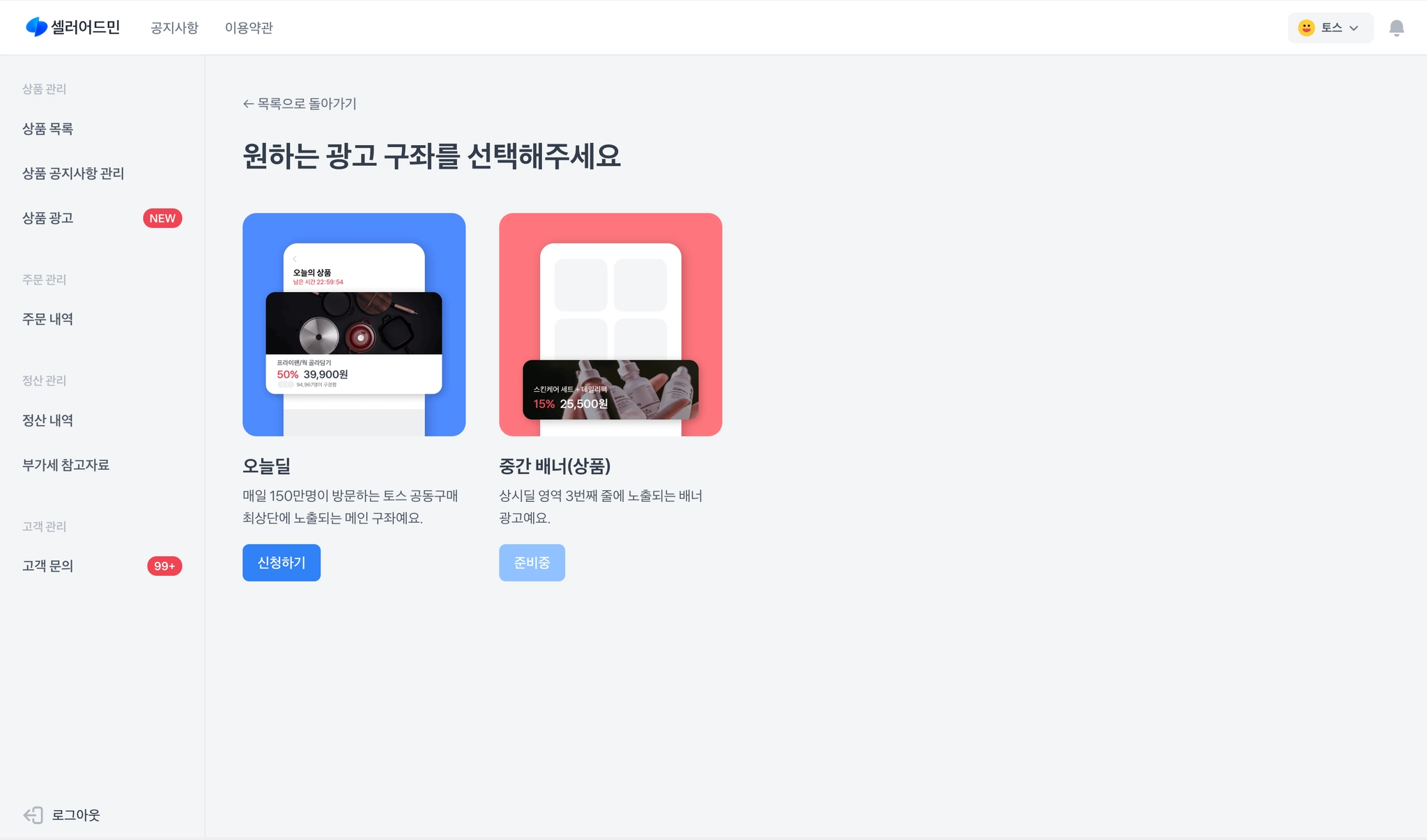 1. 셀러 어드민에서 오늘딜 구좌 신청하기