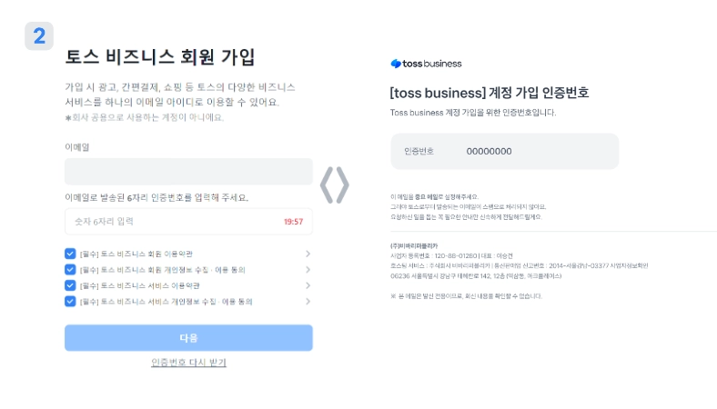 이미 토스 비즈니스에서 사용 중인 이메일이라면, 인증이 어려워요