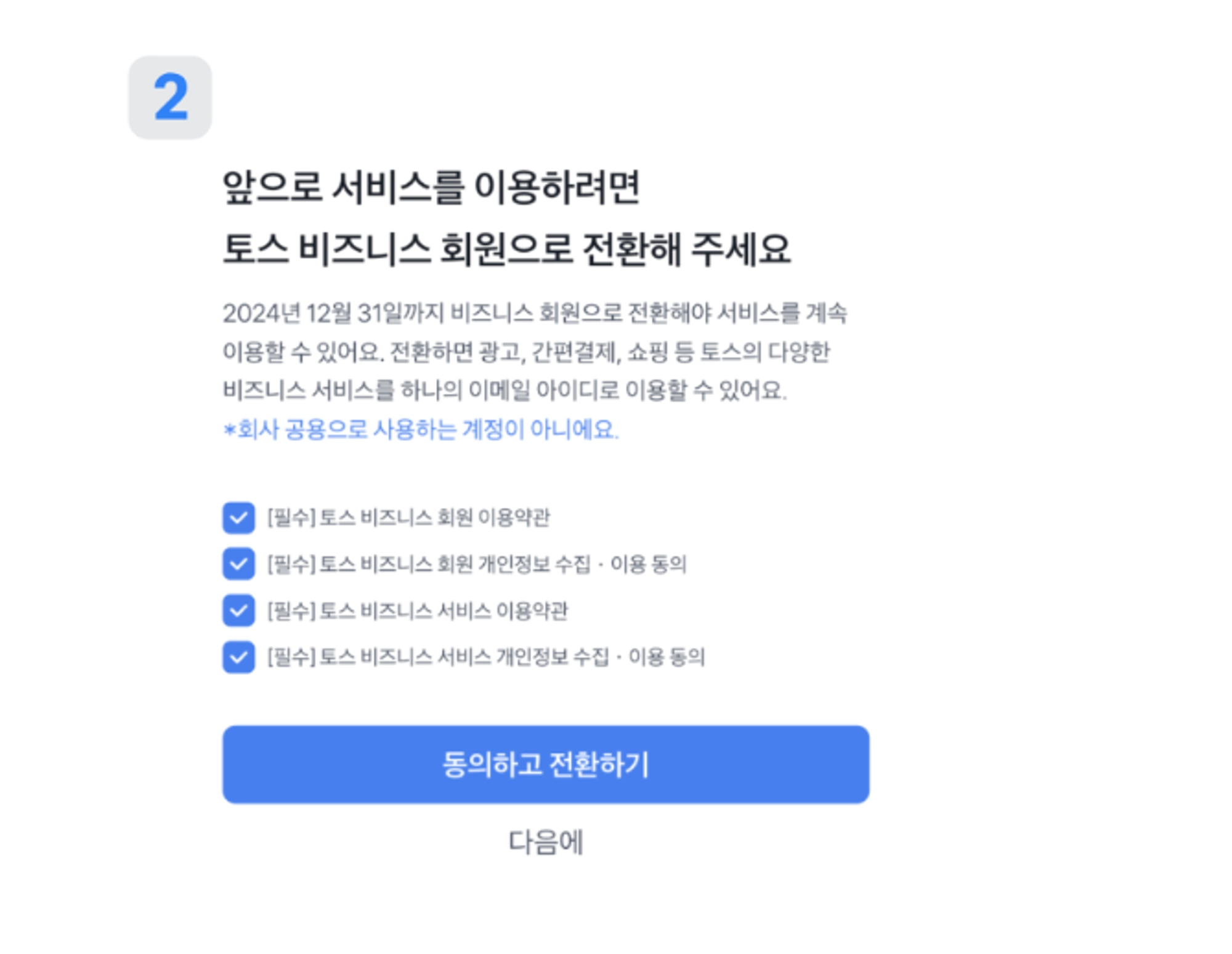 2024년 12월 31일 이전까지 토스 비즈니스 전환이 필요해요