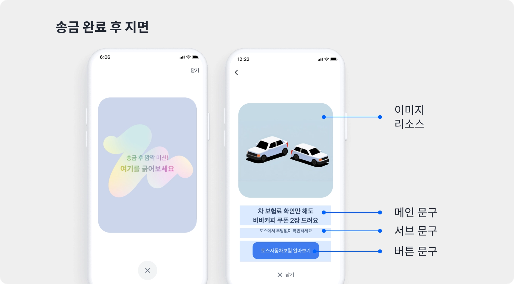 토스 혜택탭 내 기존 메뉴와 문구 톤을 맞추는 것을 권장합니다. (클릭률 ↑)