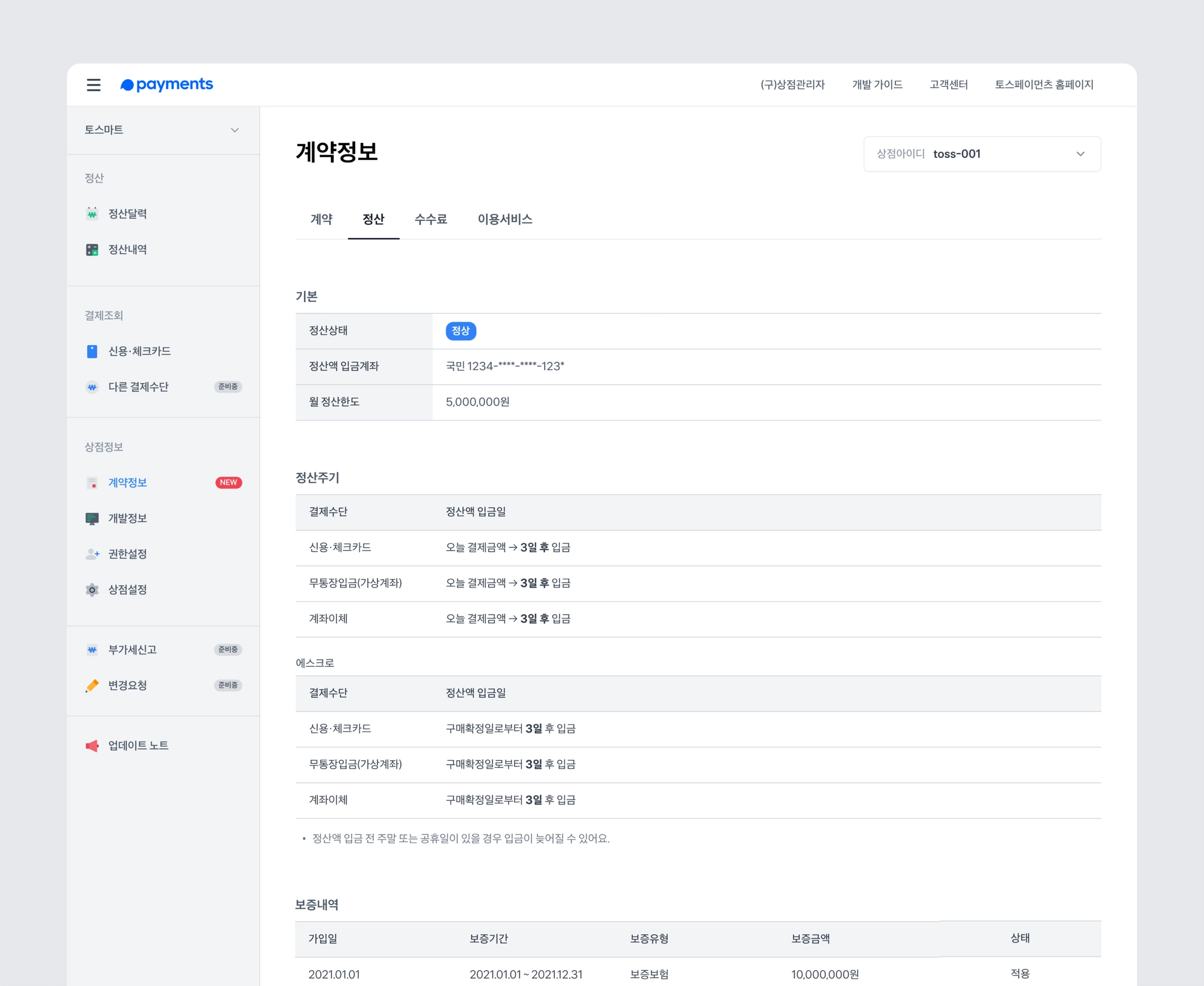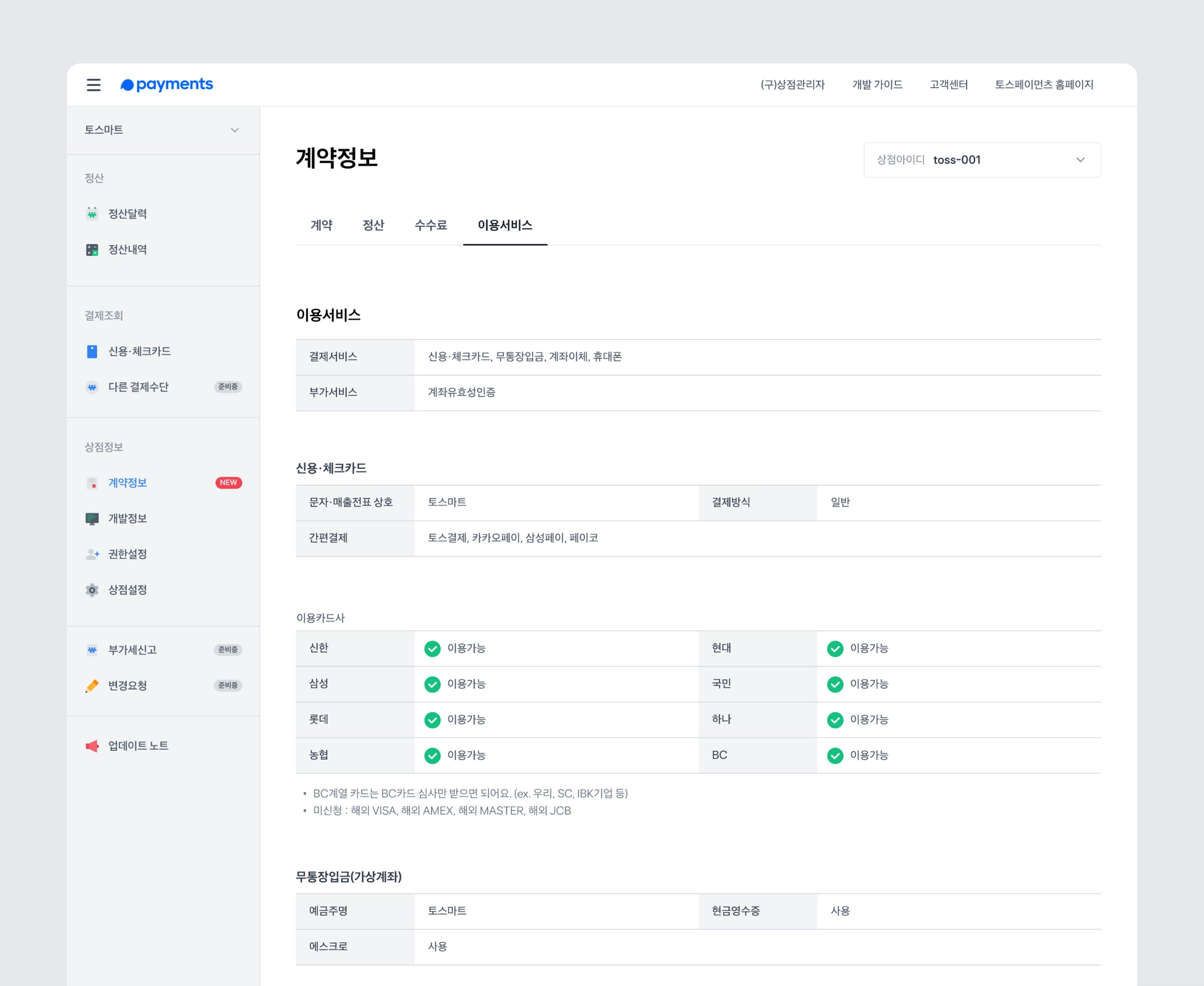 update - 토스페이먼츠와 어떤 계약을 했는지 한눈에 확인할 수 있어요.