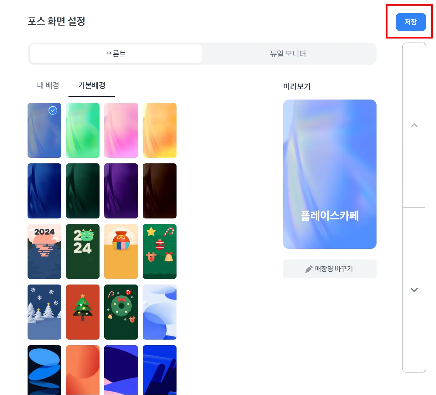 원하는 이미지를 선택한 후 오른쪽 상단의 저장 버튼을 눌러 주세요.
