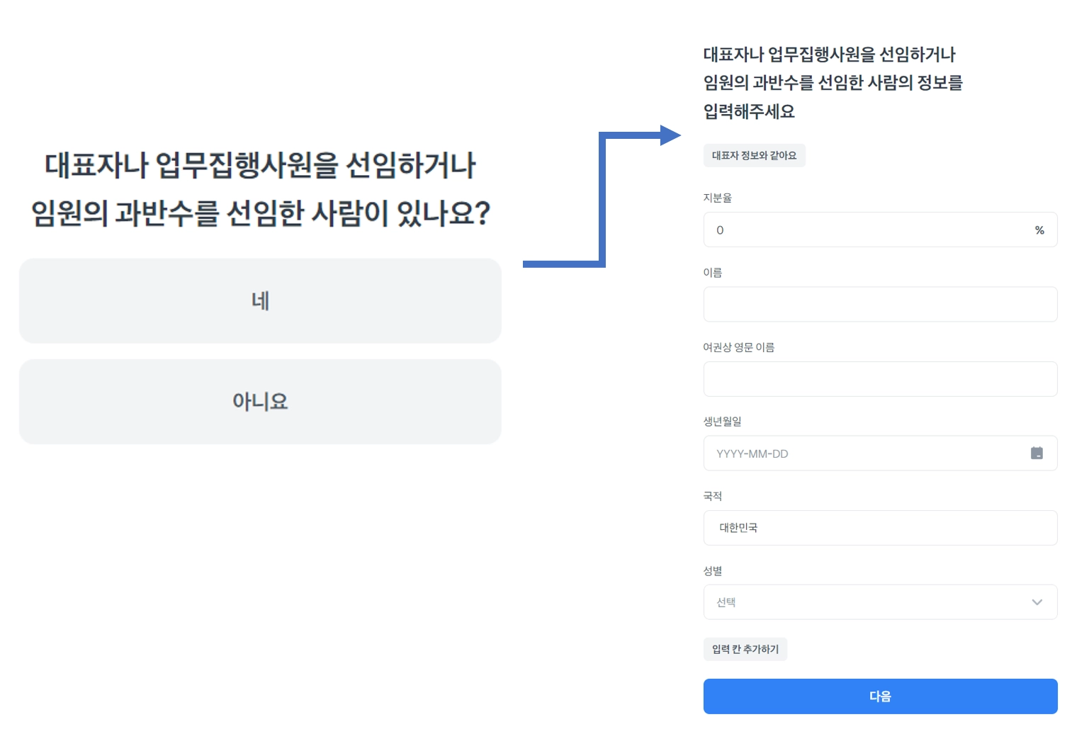 를 선택하셨다면, 지분을 보유한 사람의 정보를 입력해 주세요