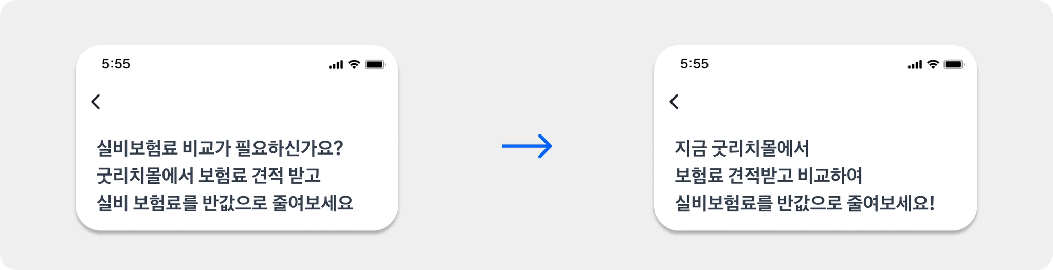 너무 길고 빽빽한 문장은 모바일 환경에서 가독성이 크게 떨어집니다.