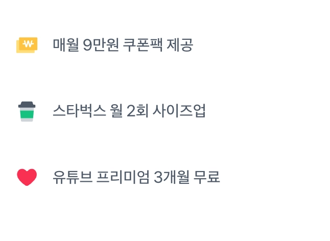 사용 가능한 혜택 리스트 아이콘은 다음과 같습니다.