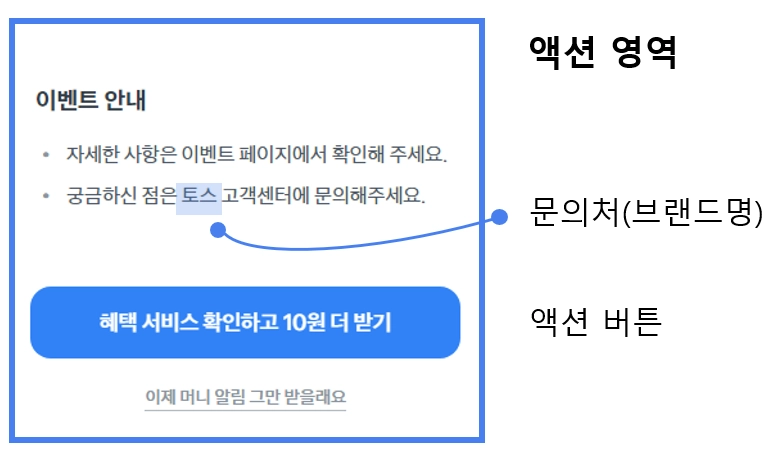 CTA 버튼명은 액션 + 10원 더 받기와 같은 형태로 기재합니다.