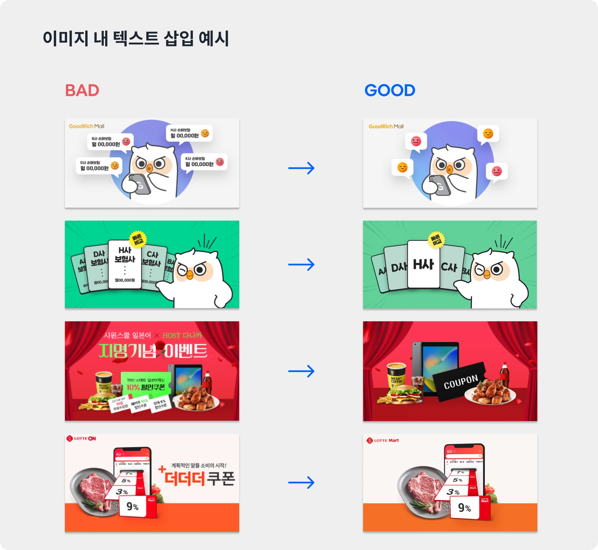 디자인 요소의 텍스트는 가능하나, 정보 전달성 텍스트는 불가합니다.