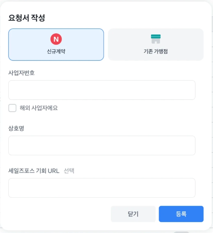 세일즈포스 기회 URL을 입력한 뒤, 요청서를 등록합니다.