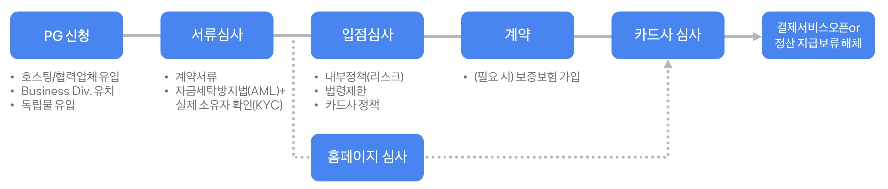 이후 정상 결제 및 정산 가능한 시점까지 전반적인 PG서비스 온보딩을 프로젝트처럼 관리하는 역할을 수행하고 있어요.