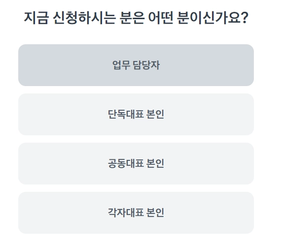 사업자등록증에 대표님이 한 분, 대표님 본인이 직접 신청할 때 선택해 주세요