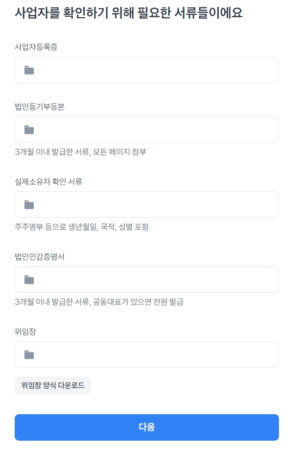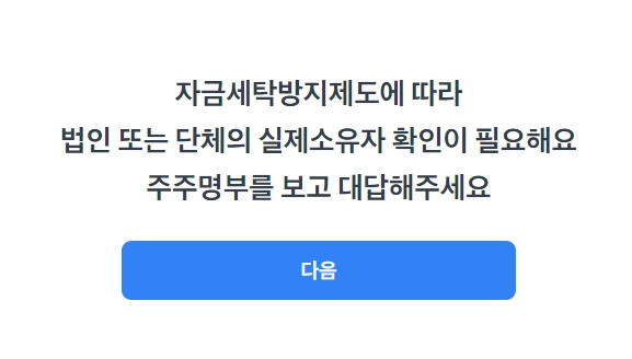 실제 소유자 확인에 대한 증빙 서류를 준비 후 다음 을 눌러주세요