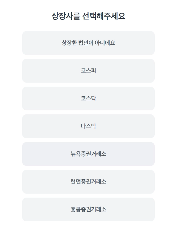 상장이 아닌 사업보고서 제출 대상 법인이라면, 상장한 법인이 아니에요 를 눌러주세요.
