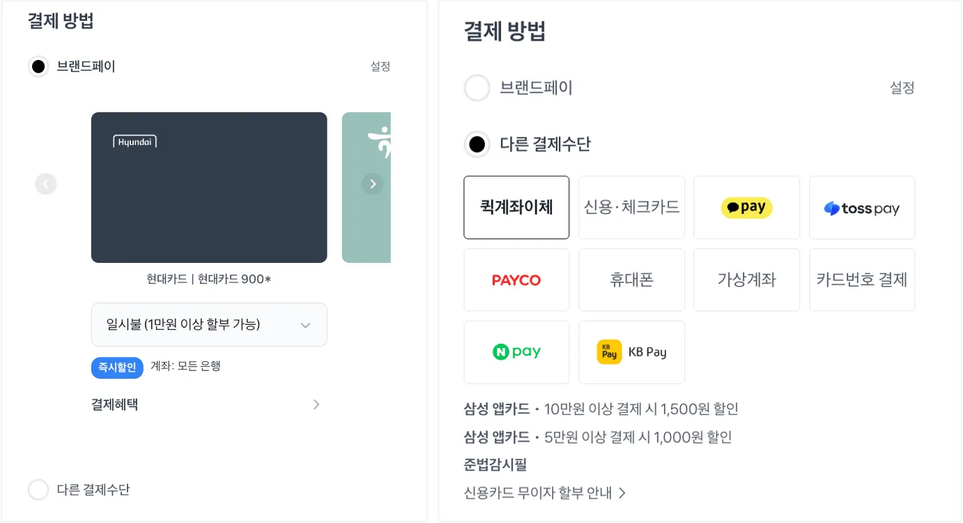브랜드페이는 카드 / 계좌 등록을 지원합니다.