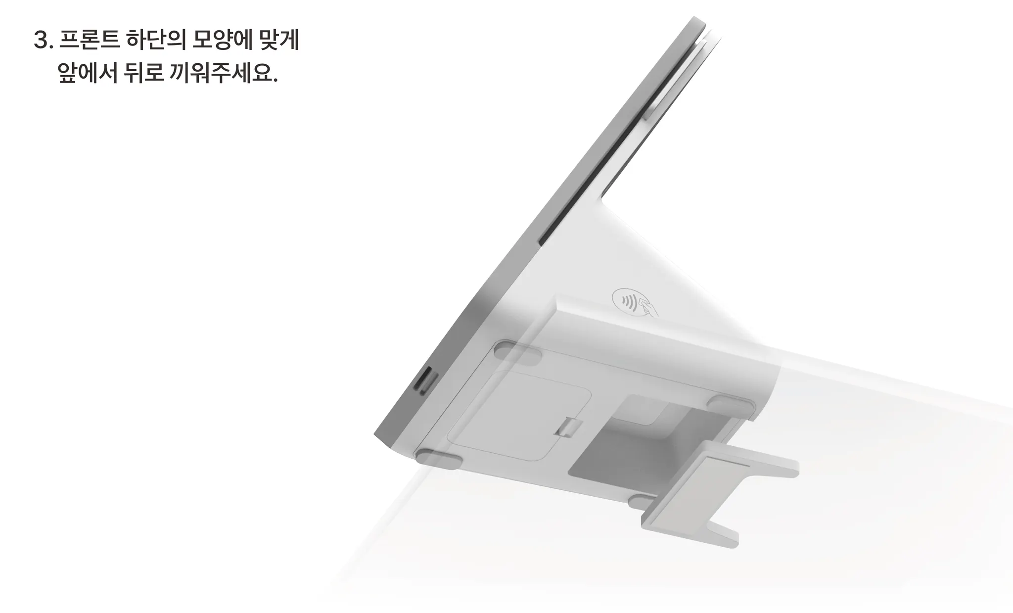 프론트를 올려놓는 카운터 매대의 환경에 따라, 카드를 꽂았을 때 단말기가 밀리지 않도록 고정시키는 악세서리입니다.