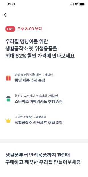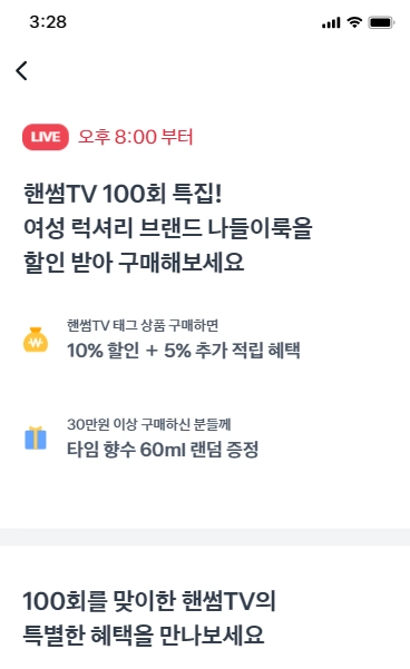 방송 전 : 라이브방송 보고 혜택 받기 방송 중 : 라이브방송 보고 10원 더 받기 방송 후 : 라이브방송 보고 혜택 받기