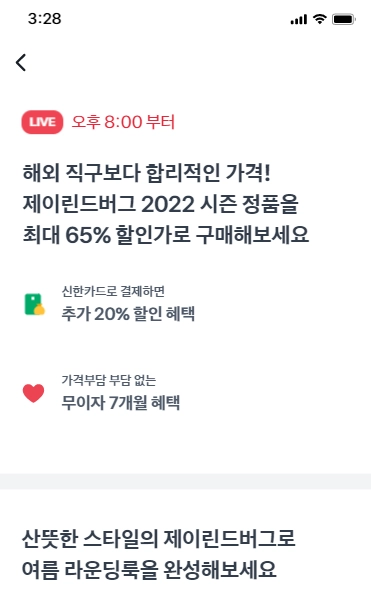 상품 이미지를 클릭하면 라이브 방송 페이지 혹은 해당 상품으로 랜딩 되어요.