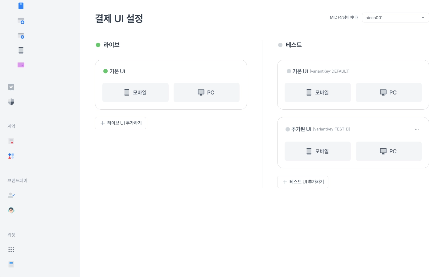 상점관리자에서 결제위젯을 여러 개 만들 수 있도록 확장한 뒤, JS SDK를 사용할 때 어떤 결제위젯을 사용할지 정할 수 있습니다.