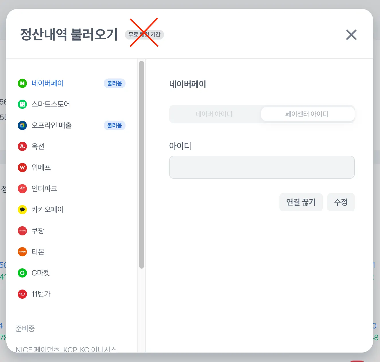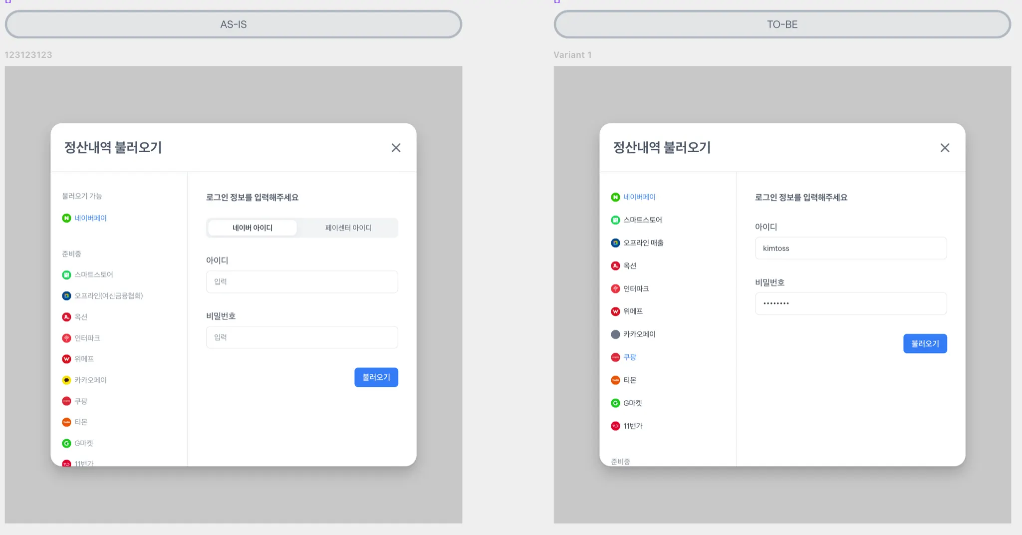 네이버페이, 스마트스토어 아이디 선택 탭 없애기