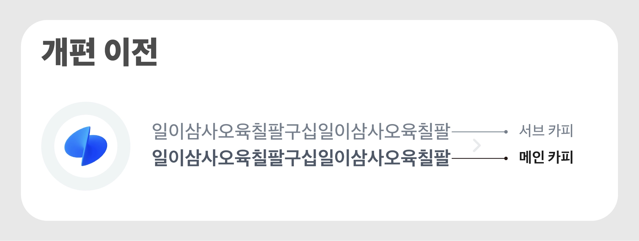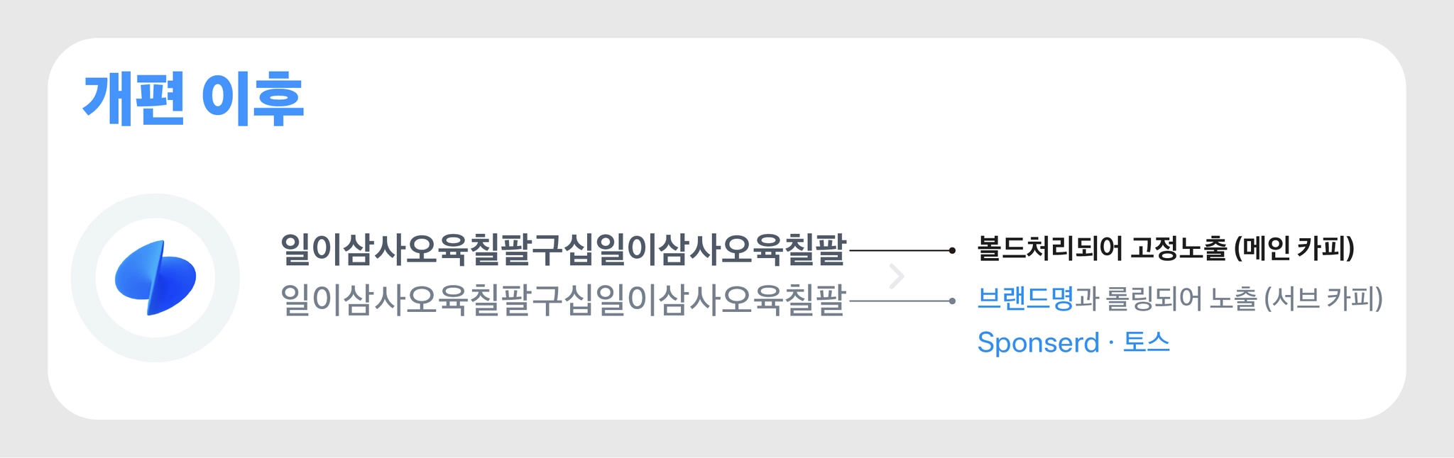 첫번째 줄에 메인 카피 볼드 형태로 고정 노출