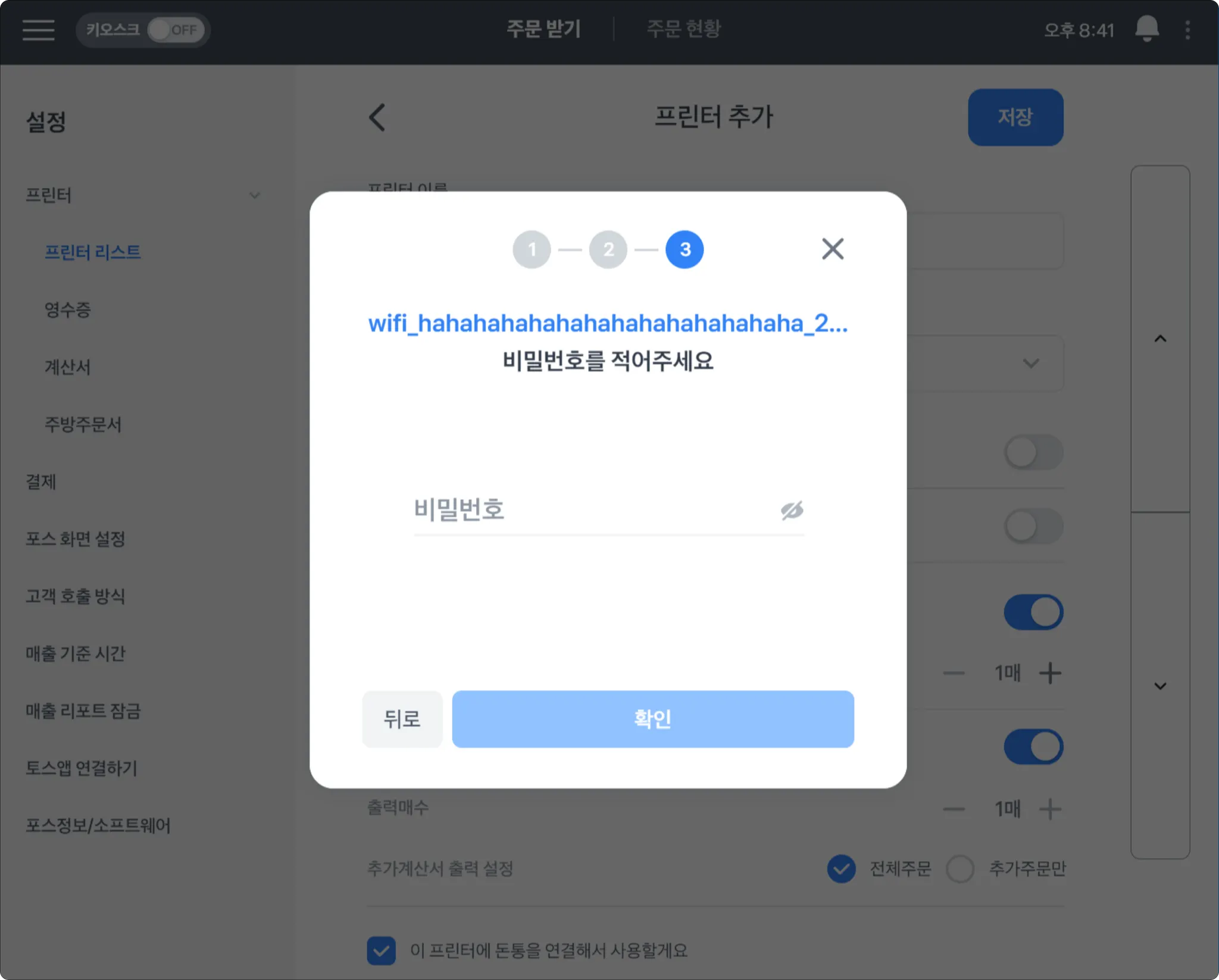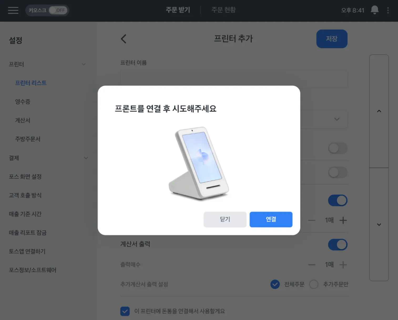 1. 토스 포스에서 프린터 추가하기 (네트워크 연결 방식)