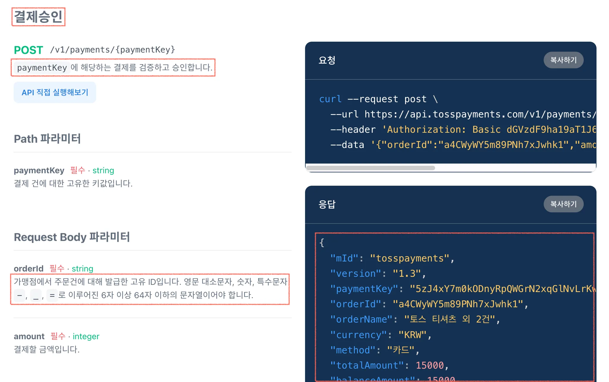 `paymentKey`에 해당하는 결제를 검증하고 승인합니다.