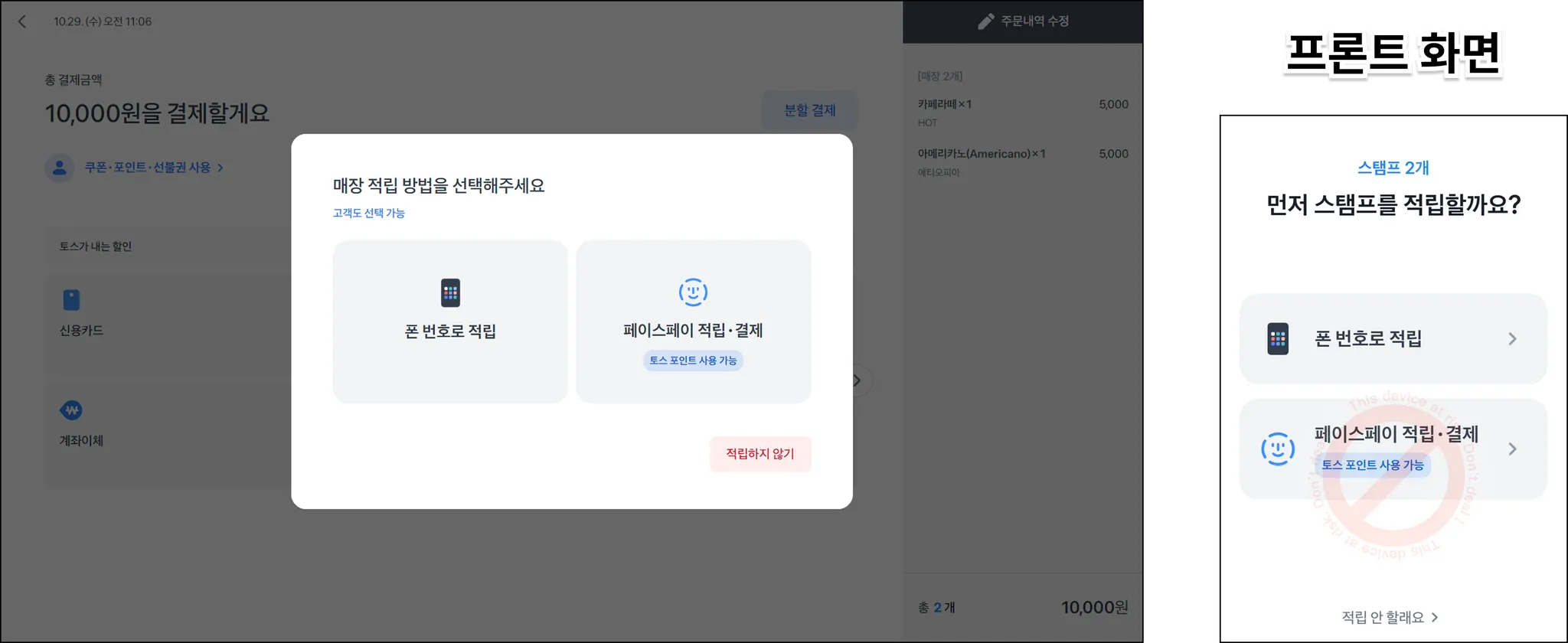 해당 화면이 보이지 않고, 바로 적립 된다면 손님은 토스플레이스 단말기를 이용하는 타매장에서 이미 동의한 상태에요.