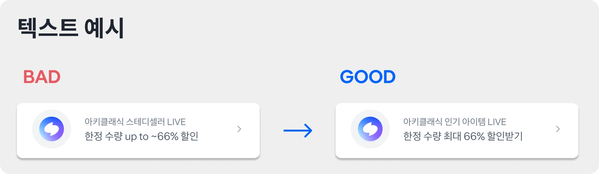 이미지에 [브랜드 로고]를 사용하지 않는 경우, 문구에 [브랜드명]을 노출해야 합니다.