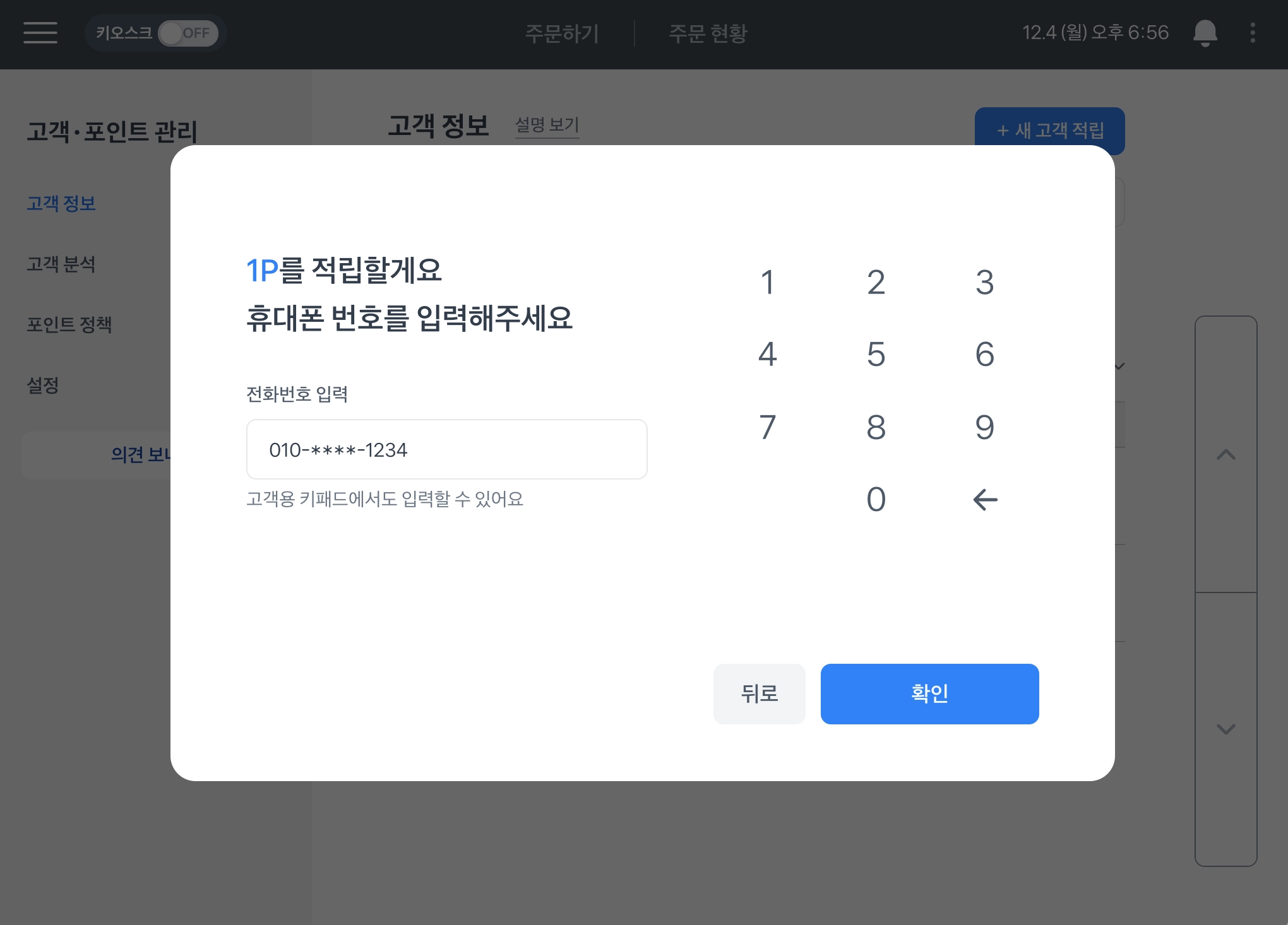 포스 좌측 상단 ≡ > 고객・포인트 관리에서 포인트 써보기