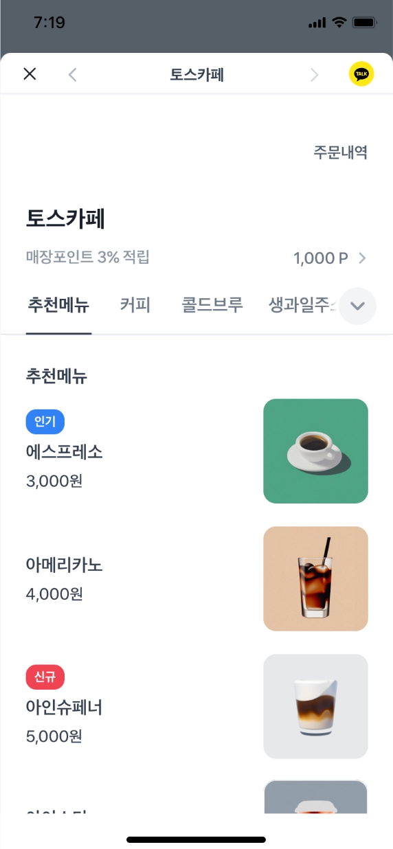 토스오더로 매장에 직접 주문해보기