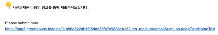 이전에 받으셨던 [토스채용] OO님 사전과제 안내 드립니다. (과제 환경설정 가이드 안내 포함) 메일 하단의 링크로 접속해주세요.