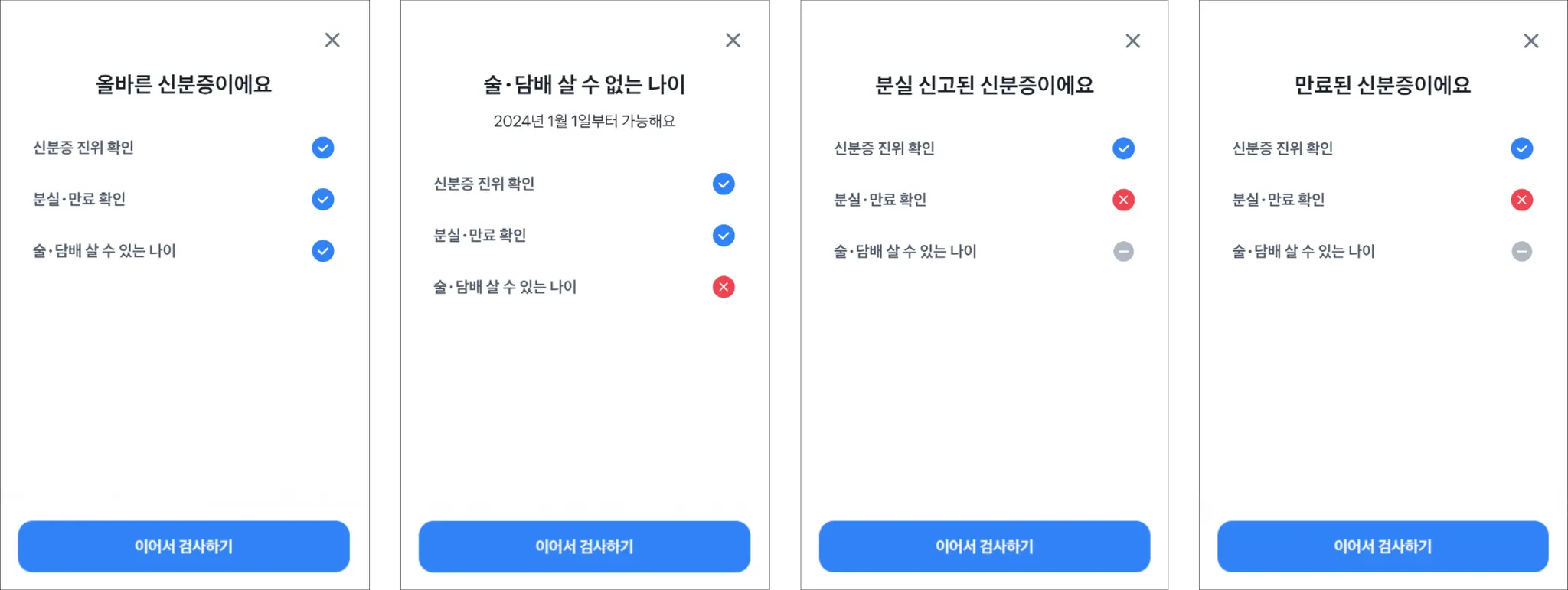 ※ 지속하여 올바르지 않은 신분증이라고 나올 경우 위조된 모바일 신분증일 가능성이 매우 높아요.