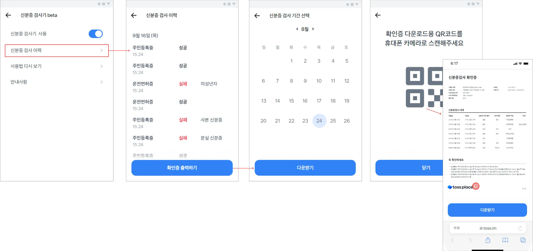 검사 이력은 카카오톡으로 알려드리고, 신분증 검사 이력에서도 확인 가능해요.