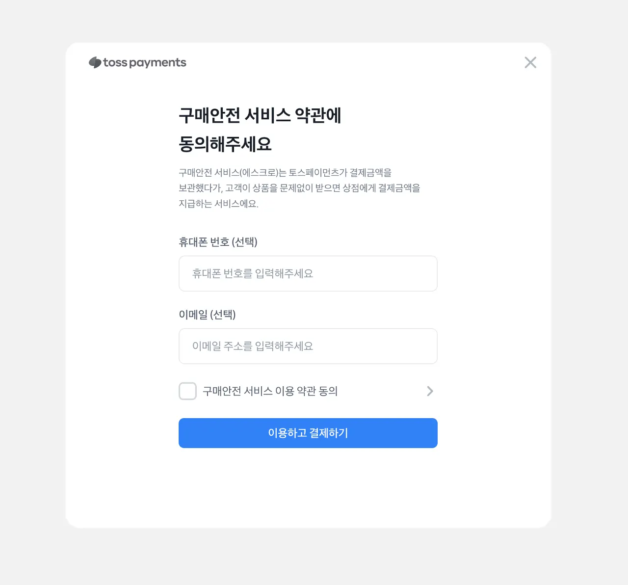 이 상점 설정에 따라 결제창에서의 에스크로 관련 UI 가 다르게 표현됩니다.