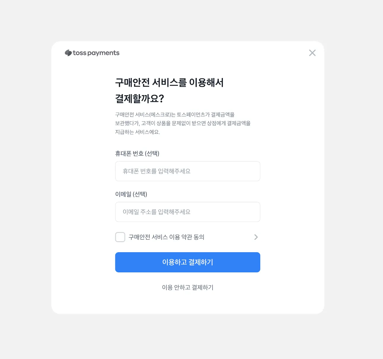 결제를 하는 모든 거래에 대해 결제를 하는 고객이 에스크로를 적용할지 말지 선택하도록