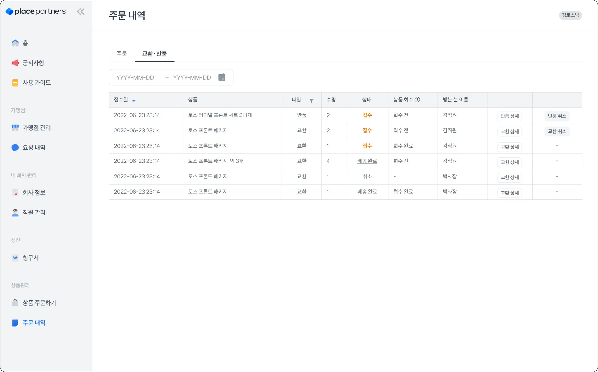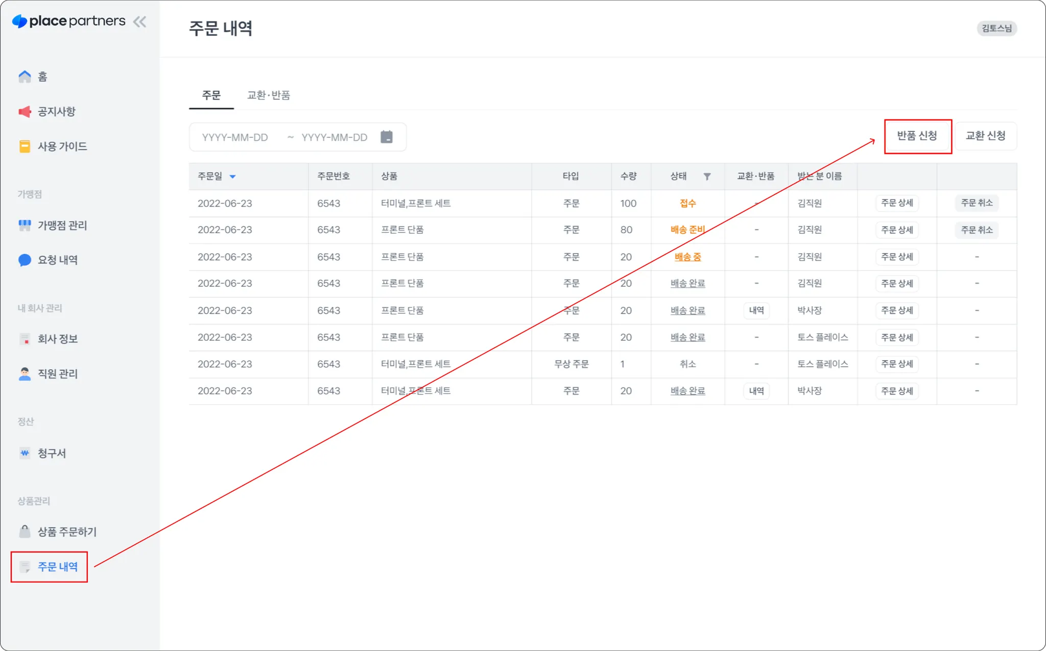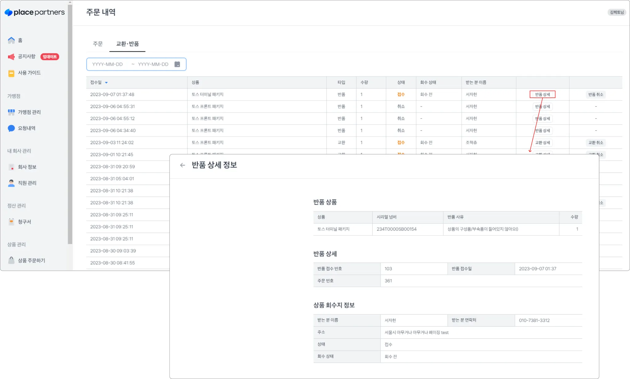 반품 상세를 누르면 상세 정보를 확인해 볼 수 있어요.